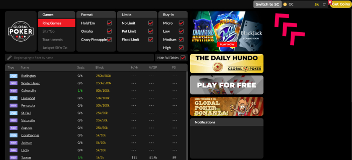 - Sign up for an account on Global Poker (using this link or any link we tweet out)