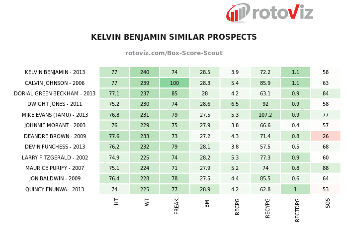 Benjamin has physical gifts that few NFL wide receivers have. He is 6’5, 240 pounds, with 35 inch arms and 10 inch hands. This is the type of catching radius that Benjamin gives Cam Newton in addition to leveraging his very good physical strength to impose his will on opposing defenders.