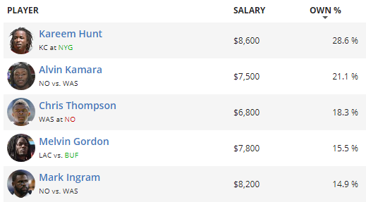 Ownership rates have a strong correlation with players hitting value, as DFS players tend to make wise investments with their money rather than flushing it down the toilet. So as you might expect, projected ownership rates give us a sneak preview of who will be the wisest cash game plays. On the flip side, it will help us target contrarian GPP options who may slip under the radar and enable us to win a couple hundred thousand dollars. Let’s dive in position by position to see what the weekend has in store for us.