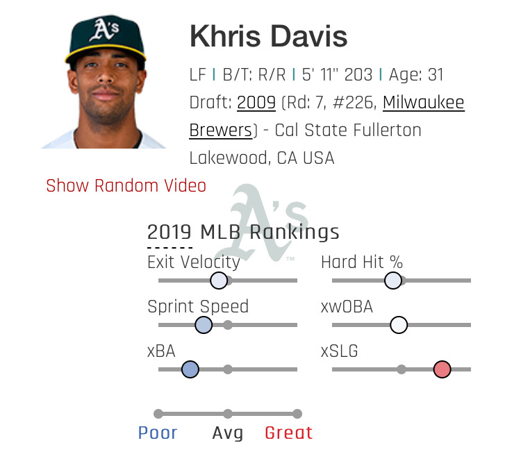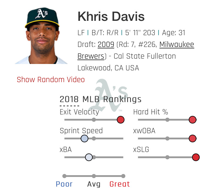 His hard contact is down nearly nine percent and even more worrisome, his average exit velocity on line drives and fly balls (EV LD/FB) has declined nearly three mph. His fly-ball rate has gone the extreme at 50% and his overall contact rate is down. He’s going to have a hard time maintaining even a .247 batting average given those metrics. While I think Davis still manages to hit 38-40 homers this year, it may come with a batting average drain around .225-.230. That is unless he improves his overall and quality of contact.