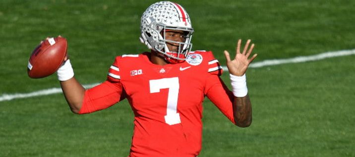 While moving to his sides on plays by design (roll-outs), he squares his shoulders and is able to throw the ball without losing much velocity. His throwing motion is very smooth when he properly sets his feet, but falters when pressure comes. He played out of the shotgun a lot, so his footwork might take some time to adjust if he’s brought into a traditional offense, though he didn’t look too bad with his dropbacks at the Combine. He also has a very quick release when he needs to and he flashed it quite a bit on some quick screen passes with Ohio State, but it’s inconsistent as he doesn’t deliver the ball the same on every throw. All in all, he’s a work in progress, but the tools are there.