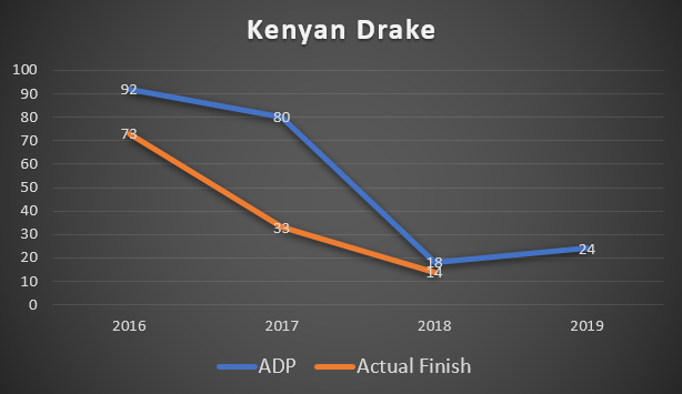 So how on earth did his ADP drop off six spots from last year? Drake has been known to split time, which very well could continue, but unless Ballage or someone else somehow soaks up all of these touches, Drake should see an uptick in usage.