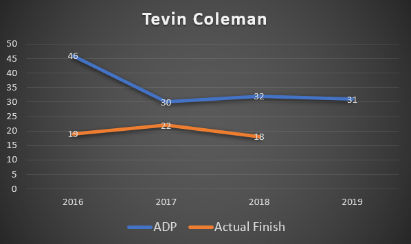 Tevin Coleman (SF) Current ADP: RB31; Projected Finish: RB20