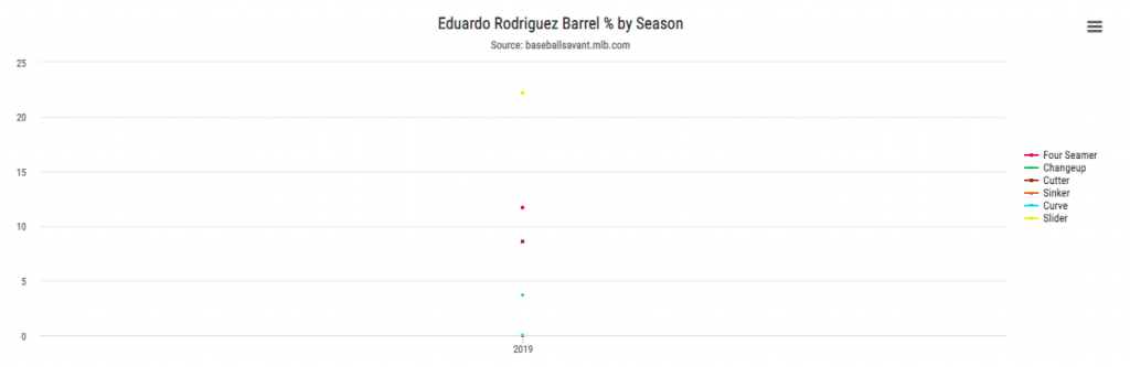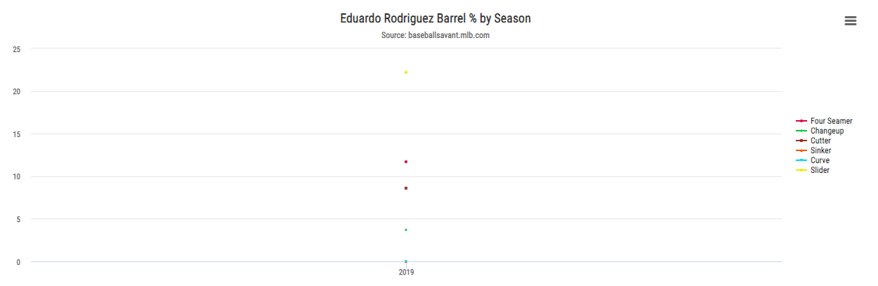 As his fourth pitch, the sinker has been outstanding for Rodriguez. He’s holding the opposition to a .163 average against and a .214 slugging. He’s allowed just one home run off it and hasn’t given up a single barrel on the pitch all season. That’s 338 pitches, and not a single barrel. That, in itself, will limit the exit velocity.