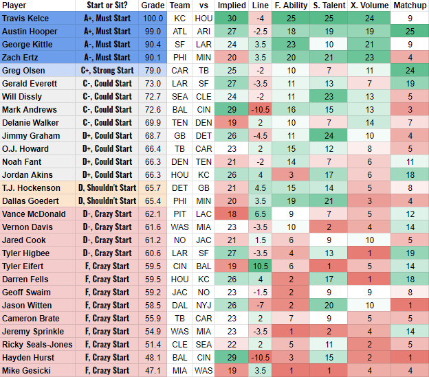 Travis Kelce (TE – KC): 100, A+, Must Start