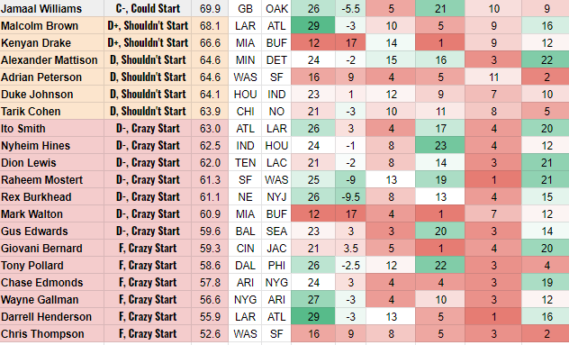 Malcolm Brown (RB – LAR): 68, D+, Shouldn’t Start