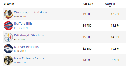 FanDuel players are betting against Jeff Driskel this week. The backup has looked surprisingly good since Matthew Stafford went down, and I don’t think the ‘Skins are the team to end his hot streak. That said, they are just $3,000, so they’re not a bad bargain-bin play — just don’t get your expectations up. The rest of this week’s popular options all made Jacob Herlin’s shortlist this week. We’ve got both sides of the Bills/Broncos tilt, and Denver’s banged-up offensive line makes Buffalo a good bet. Four of Brandon Allen’s starting blockers are listed as questionable this week, so look for the Bills to capitalize with some sacks. On the other side of the ball, I’m worried about a potentially negative game script with so many linemen hurt. If you’re willing to roll the dice, however, studs like Von Miller and Derek Wolfe could come through with some key sacks. Lastly, we’ve got Pittsburgh and New Orleans. While the Steelers defense got hyped up before their Week 11 defeat against Cleveland, I’m expecting a rebound game against an atrocious Bengals team. However, their $5,000 salary might be too much to stomach for some, and I’d be more interested in Buffalo at just $4,700. The same logic applies to the Saints — sure, they beat up Tampa Bay last week, and they did so without star cornerback Marshon Lattimore. While you should look for them to perform similarly against a struggling Kyle Allen, I think that Buffalo is the better play, and they’ll cost you less cap space.