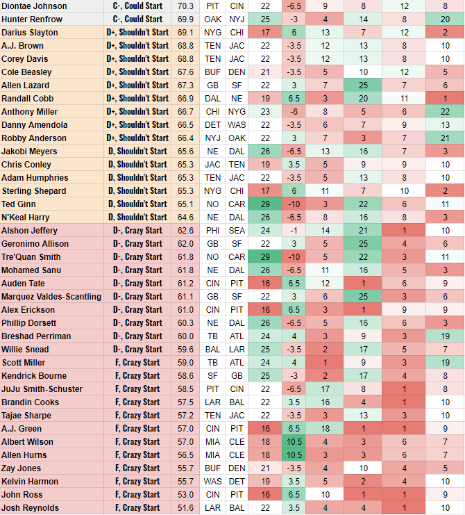 Robby Anderson (WR – NYJ): 66, D+, Shouldn’t Start