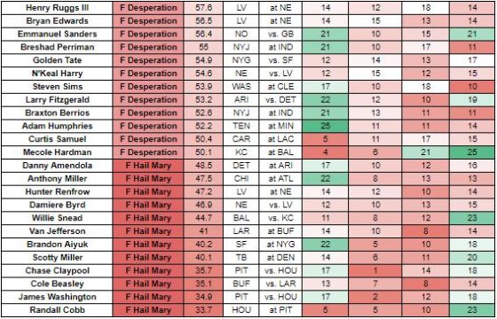 * If Kenny Golladay is out, Marvin Jones becomes a ‘D+ Flex’ and Danny Amendola becomes an ‘F Desperation’