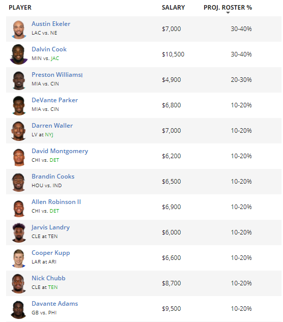 We only have one player in the 20-30% range this week, but he isn’t going to play. The Dolphins won’t activate Preston Williams from injured reserve this week, and he may not return this season. Notably, that will open up a ton of targets for DeVante Parker, so if you’re hoping to target Cincinnati’s secondary, he’s the guy to roll with.