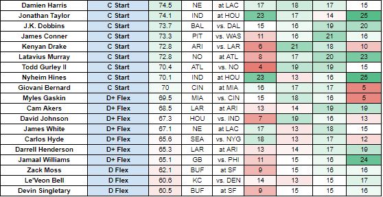 *If D’Andre Swift is out, Adrian Peterson becomes a ‘D Flex,’ and Kerryon Johnson becomes an ‘F Desperation’