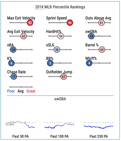 Let’s talk above the ever toolsy Lewis Brinson. At 26 years old, Brinson recorded 16 home runs, 62 runs, 72 RBI, and eight steals in 829 career major league plate appearances. Here’s the awful part, his slash line – .187/.240/.300. Not great.