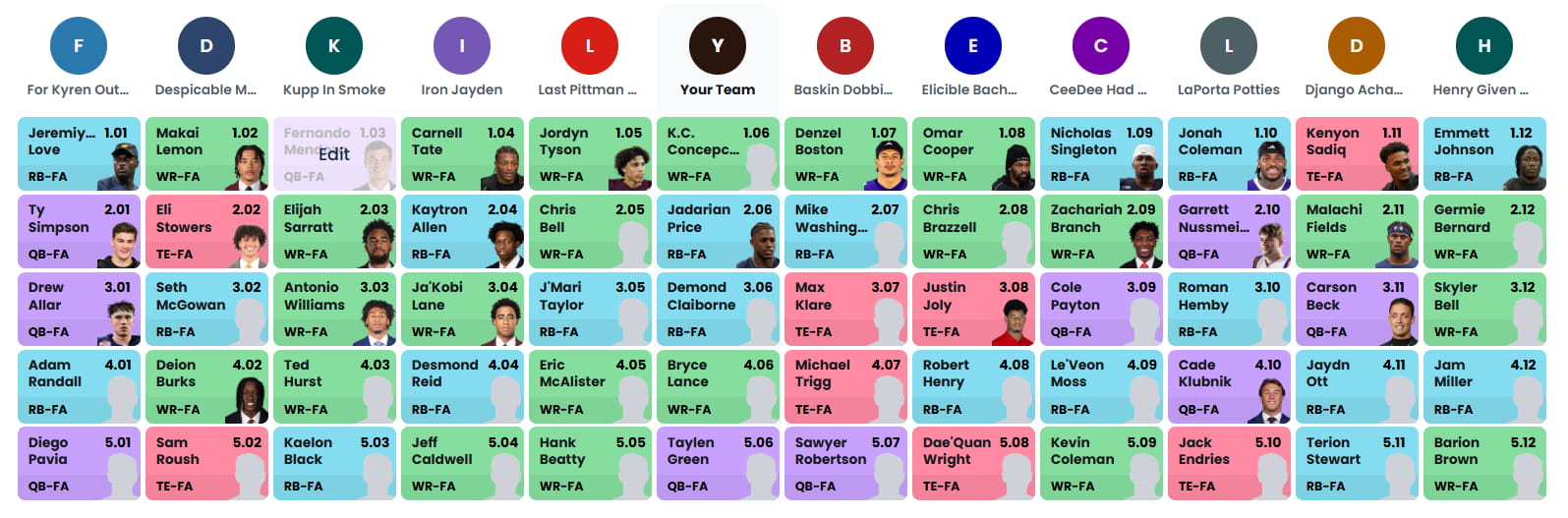 Full Dynasty Rookie Draft Board