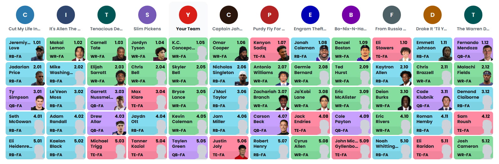 Full Dynasty Rookie Draft Board